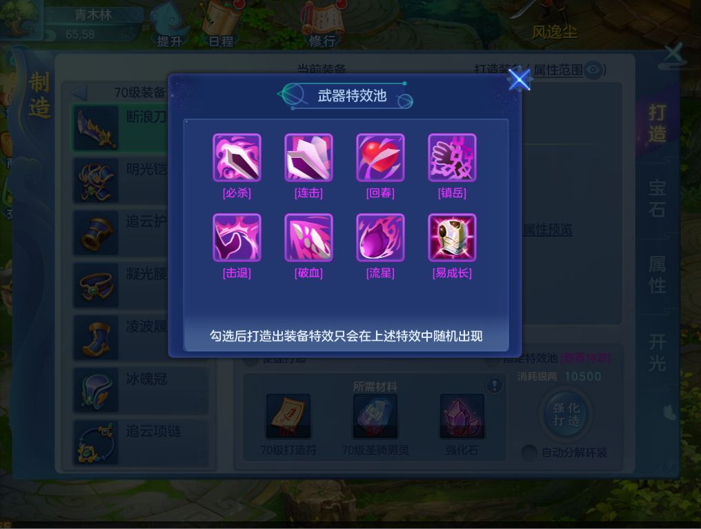 2)通过勾选指定特效池打造时,生成的装备无法进行精粹且不会获得精粹石进度。