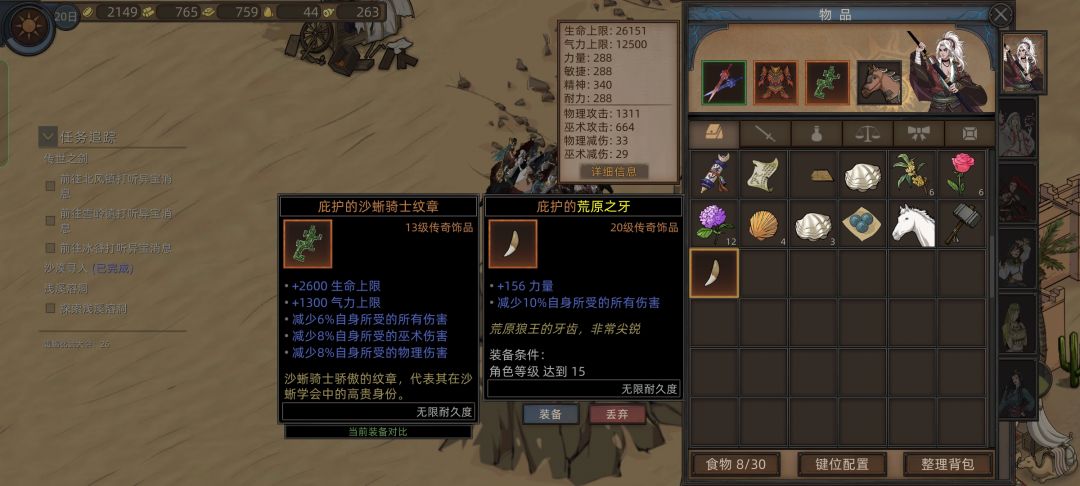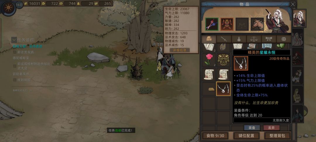 然后去驼铃集市旁边商人帮助追回货物,打败强盗选择不分赃,得到四个天赋和一个饰品,给西河伽罗带上或者公孙巴兰