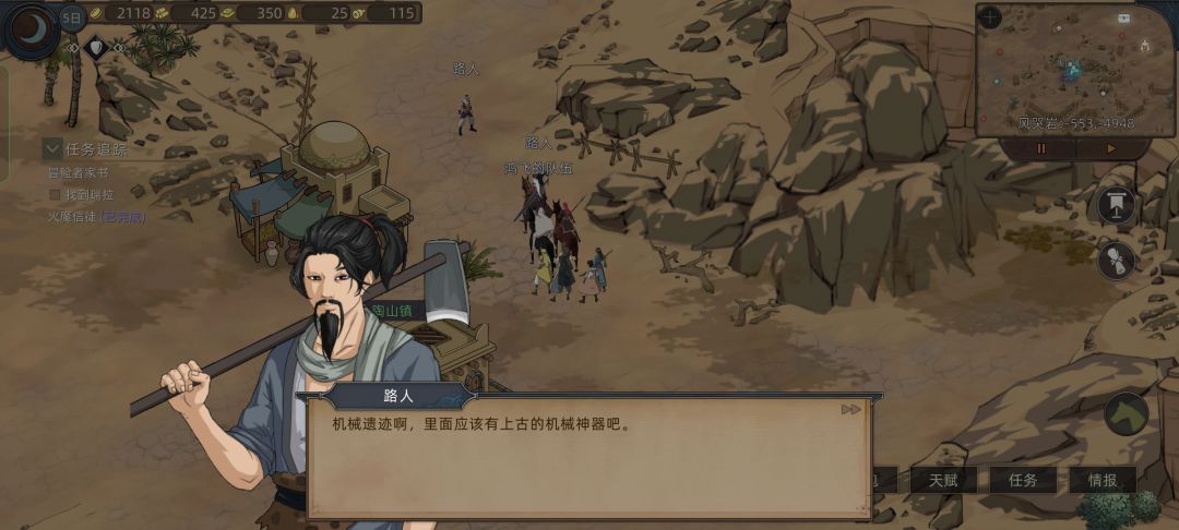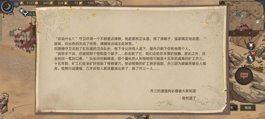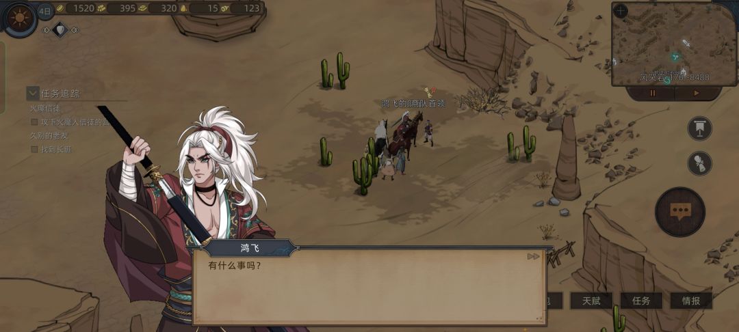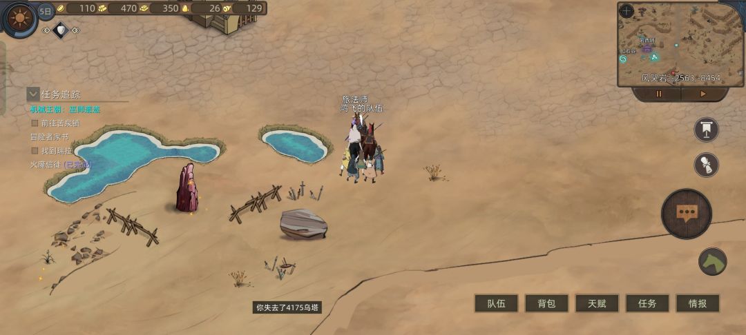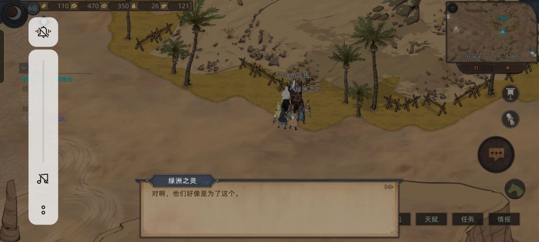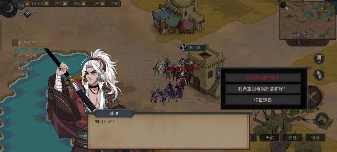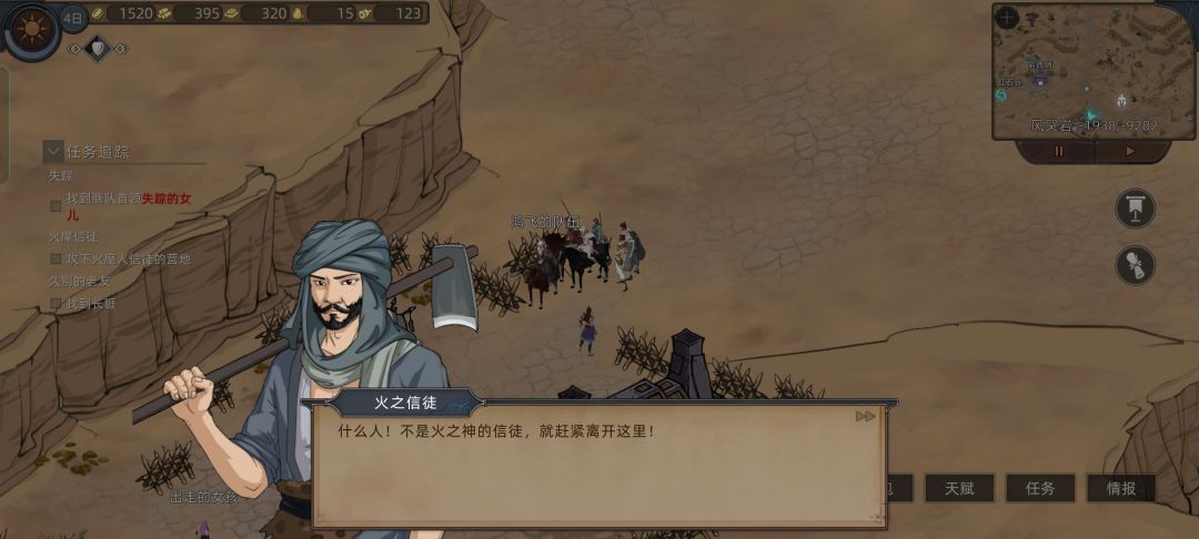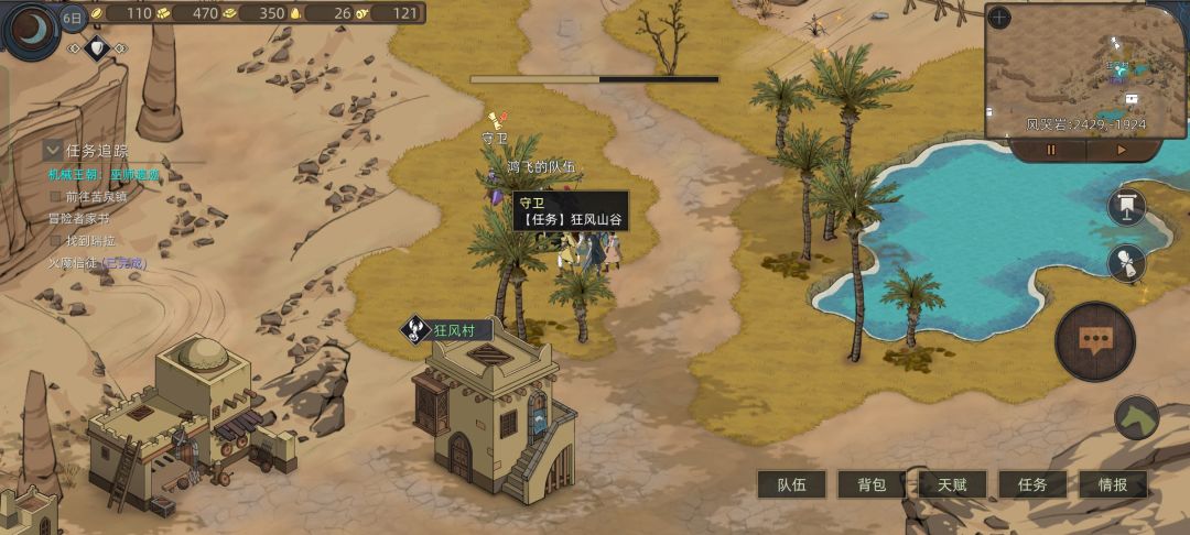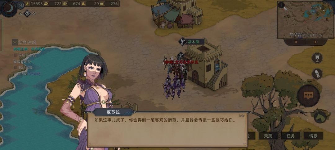 这时候我们看情报,发现我们要招募的四位妹妹英雄还在风哭岩和大沙漠,就去上面狂风村刷装备和礼物,路上路过花妖,对话拿一个技能点