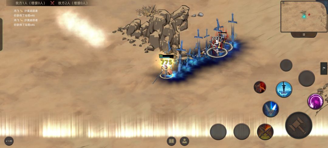 可以看出就算开局三十多级,打最基本小怪依然不疼,等技能好了上去打一套慢慢磨死即可