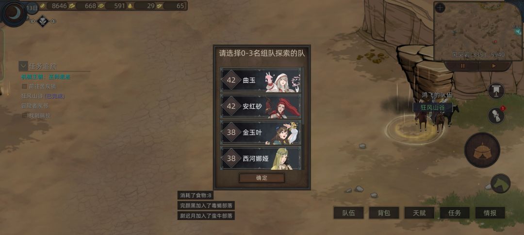 然后到狂风村接任务,去下面狂风山谷刷副本,刷一次存一次档,如果出来的时候下面提示之前看上的四位妹妹任何一个被别的部落招募了,直接读取存档让别的部落招募除了四位妹妹以外的英雄![[嗒啦啦4_叹气]](https://img.tapimg.com/market/images/6f5c5120a5abd181b6504834cc1f8465.gif)
