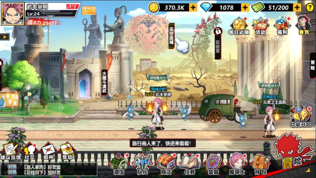 首先,玩家们可以直接在主城界面当中的下方看到商城按钮,点击商城即可进入到详细的页面当中。目前游戏当中一共分为旅行商店、普通商店、魔斗商店、公会商店和光辉商店。