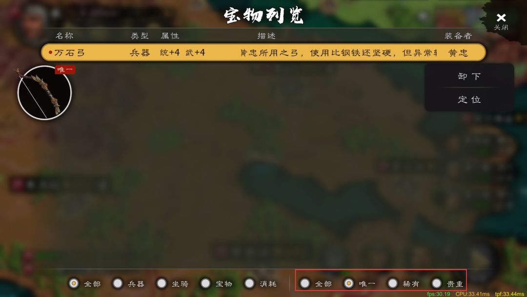 在宝物列览中对于不同的宝物添加了特殊标识,以此来区分道具的品质。目前可以分为:唯一、稀有、贵重3种品质。