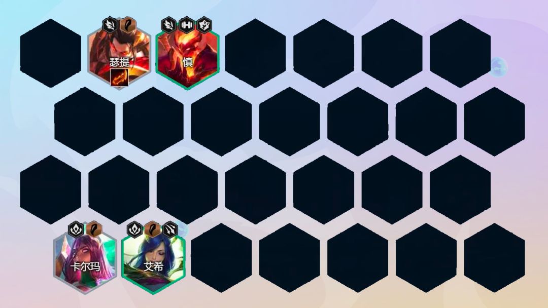 2阶段:2-1升4人口,2-5升5人口,开局瑟提、慎、卡尔玛、艾希3神龙尊者过度,给瑟提英豪,5人口可补玉龙或者怒翼龙提升质量,沃利贝尔装备输出装备给瑟提,奥恩的肉装给慎,2阶段不搜卡,能做装备直接做一直到野怪结束,没有上图小羁绊也可以选择其他强势的卡组,毕竟每个人没把都不一样,3玉龙或者2格斗家前期都是不错的打工卡。