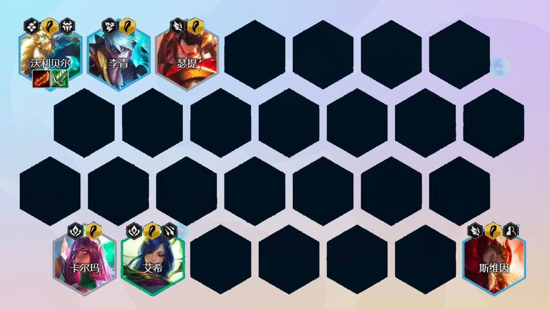 4回合:4-1回合升7人口找到奥恩开出3半神羁绊,小搜20金币,找到2星沃利贝尔。如果血量和经济不错的情况下,直接拉8人口。否则在7人口直接追3星沃利贝尔。Ps:如果有神龙尊者纹章给到艾尼维亚,可以在7人口下卡尔玛上石傲玉。