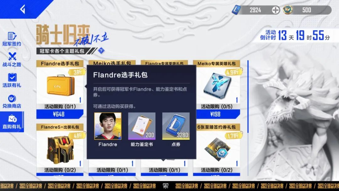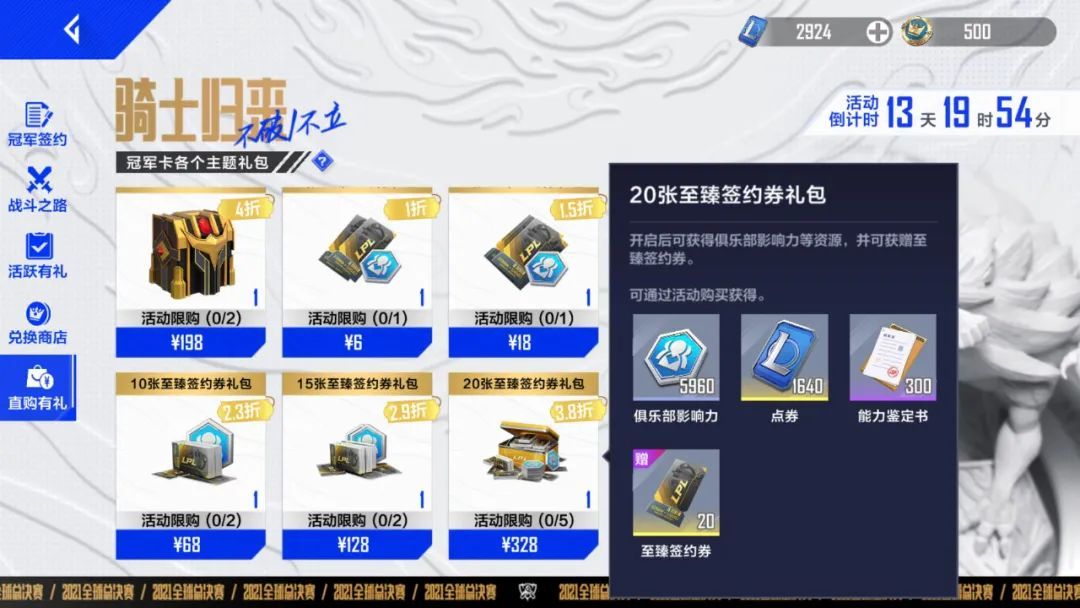 今天电竞经理开启了冠军卡的活动