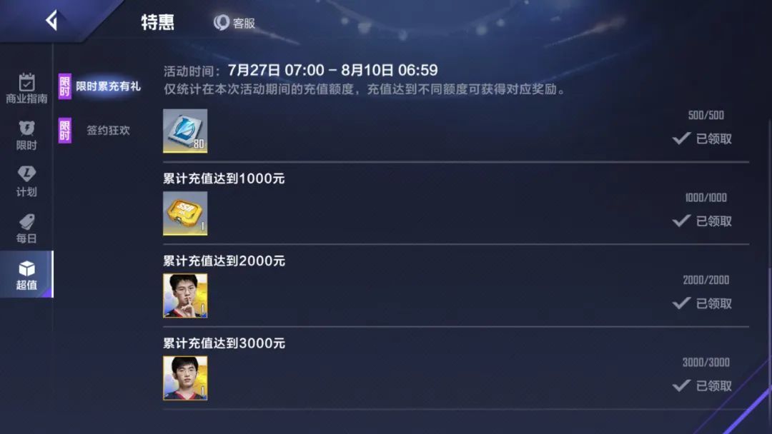 然后限时累充的奖励就拿满了