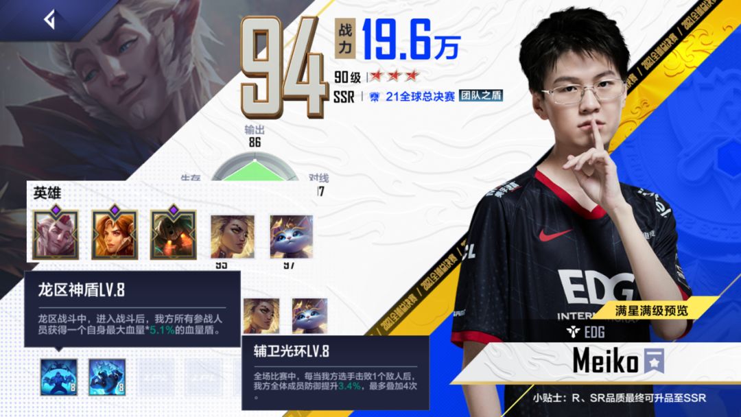 冠军卡满星领先一个87的优质上单是3万的战力