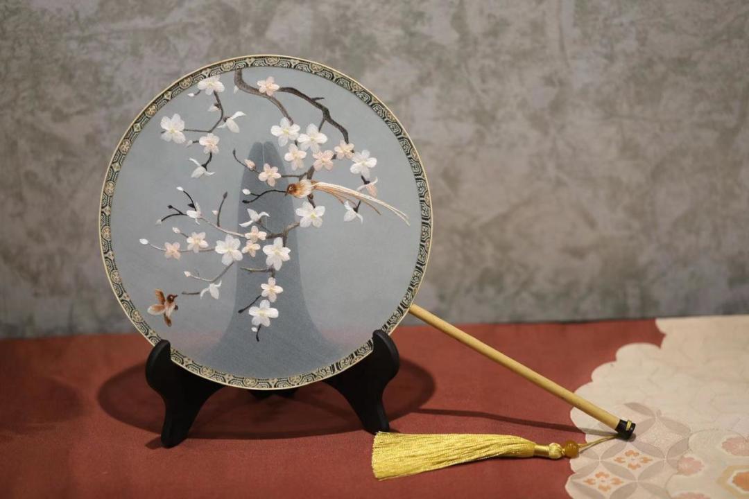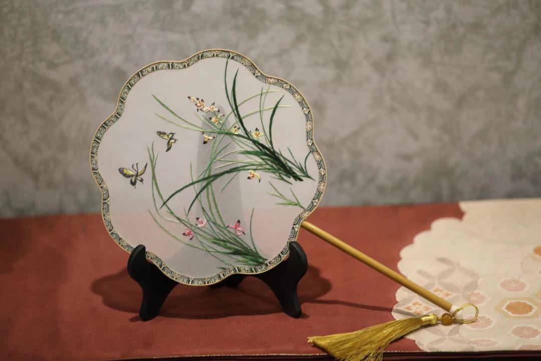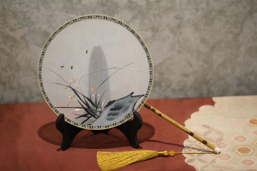 作为本次活动的珍贵奖品,蜀绣团扇本身也品质感十足!团扇扇面以桑蚕丝作为画芯,选用掺色柔和、虚实得体的绣线,配上蜀绣绣工特有的晕针、沙针、滚针等多种针法技艺灵动结合,让半透明的材质背景上,寓意美好的国风花草刺绣显得清新典雅韵味十足。