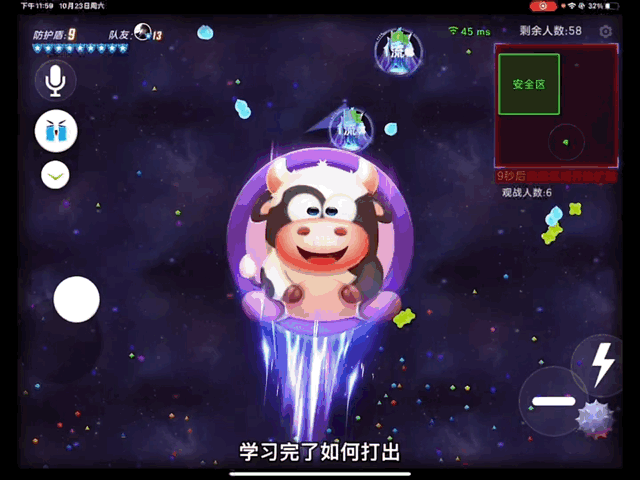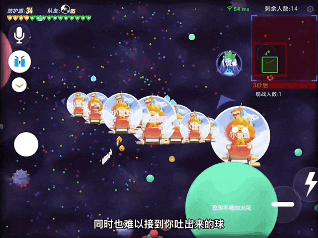 有一个小技巧是先吐一个孢子,指示队友要往哪里打,然后再十六分吐球,这样队友就只需要沿着孢子打过来,就可以顺利接到球啦。