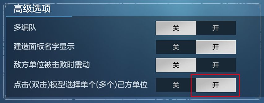在设置-高级选项中开启【点击模型选择单个己方单位】功能后,领主们就可以实现单个单位的微操。即时在同一个编队中,也能在激战中对己方阵型进行微调。