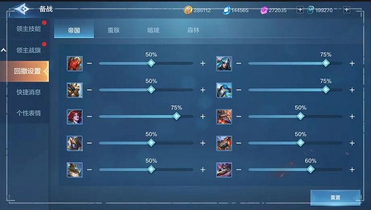 现在领主们可以在对局外和对局内,随时设定调整自己兵种的回撤血量。可以有效提升自己军团中较为脆弱的输出、治疗及辅助兵种的存活率。
