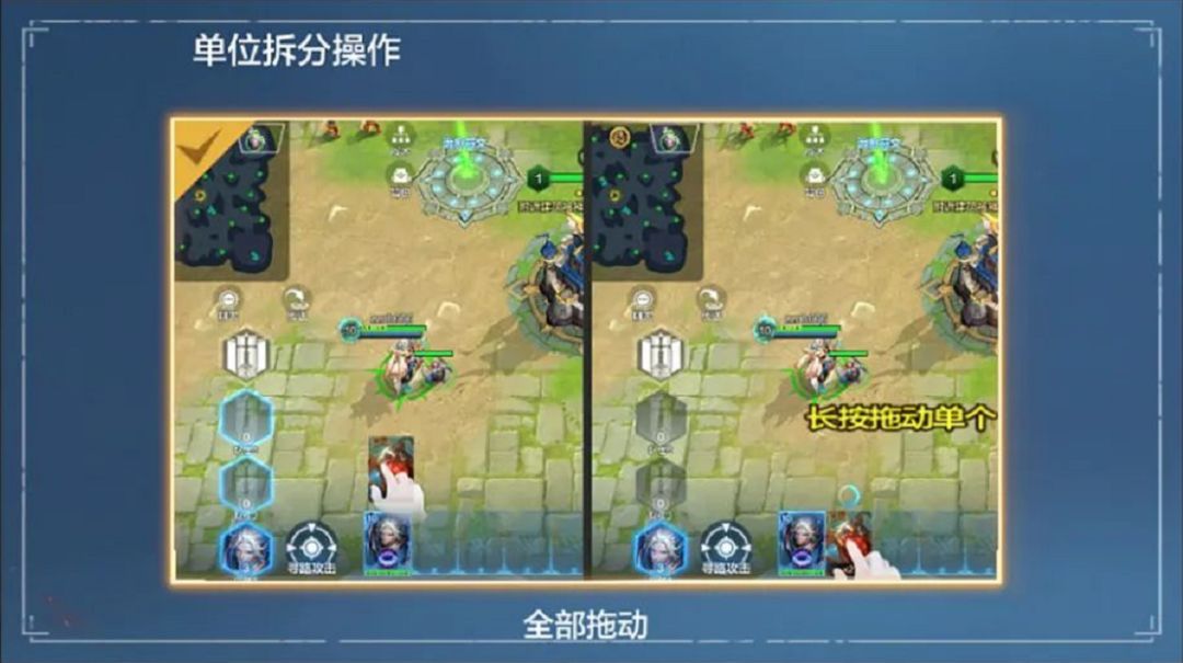 在【单独拖动】模式下:点击拖动兵种卡片,移动该卡片对应的单个单位到其他编队长按拖动兵种卡片,移动该卡片对应的所有单位到其他编队
