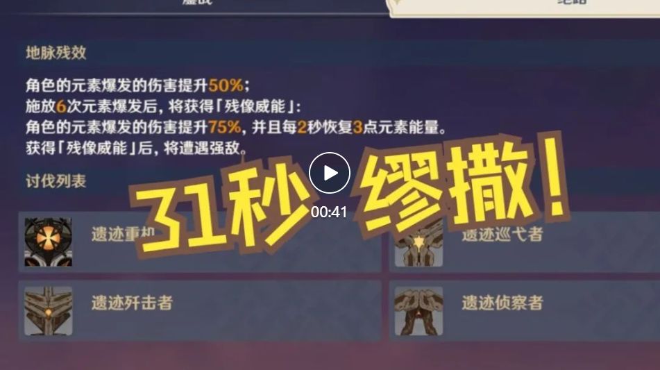 5.每个挑战都有「地脉残效」的buff,合理搭配队伍可以更轻松的完成挑战。