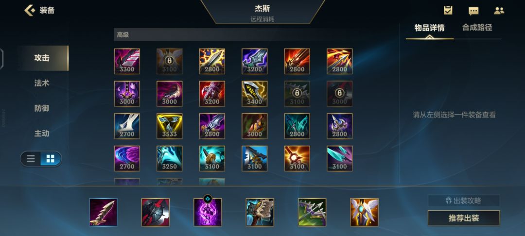 这套是中单杰斯的出装,对线传统法师可以直接幽梦,如果对线战士比方说劫亚索这种可以只出匕首过度然后黑切,如果压力很大第一次回家也可以做木锤裸黑切或者直接裸破舰者,出完黑切做出破舰者,虽然说这版本破舰者有削弱但对于杰斯来说这件装备还是很好用的,搭配爆破单带非常无解。出完破舰者之后就是杰斯的一个小的强势期,这个时间点发育正常的杰斯1v2一般来说没用太大压力,如果想要补输出或者正好够900可以补耀光,这样拆塔快输出也提高。鞋子看情况出铁板还是水银,附魔优先tp金身优势可以做推推棒,水银改了也可以出水银,新出的炼金罐也可以试试,救赎也是一个不错的选择。