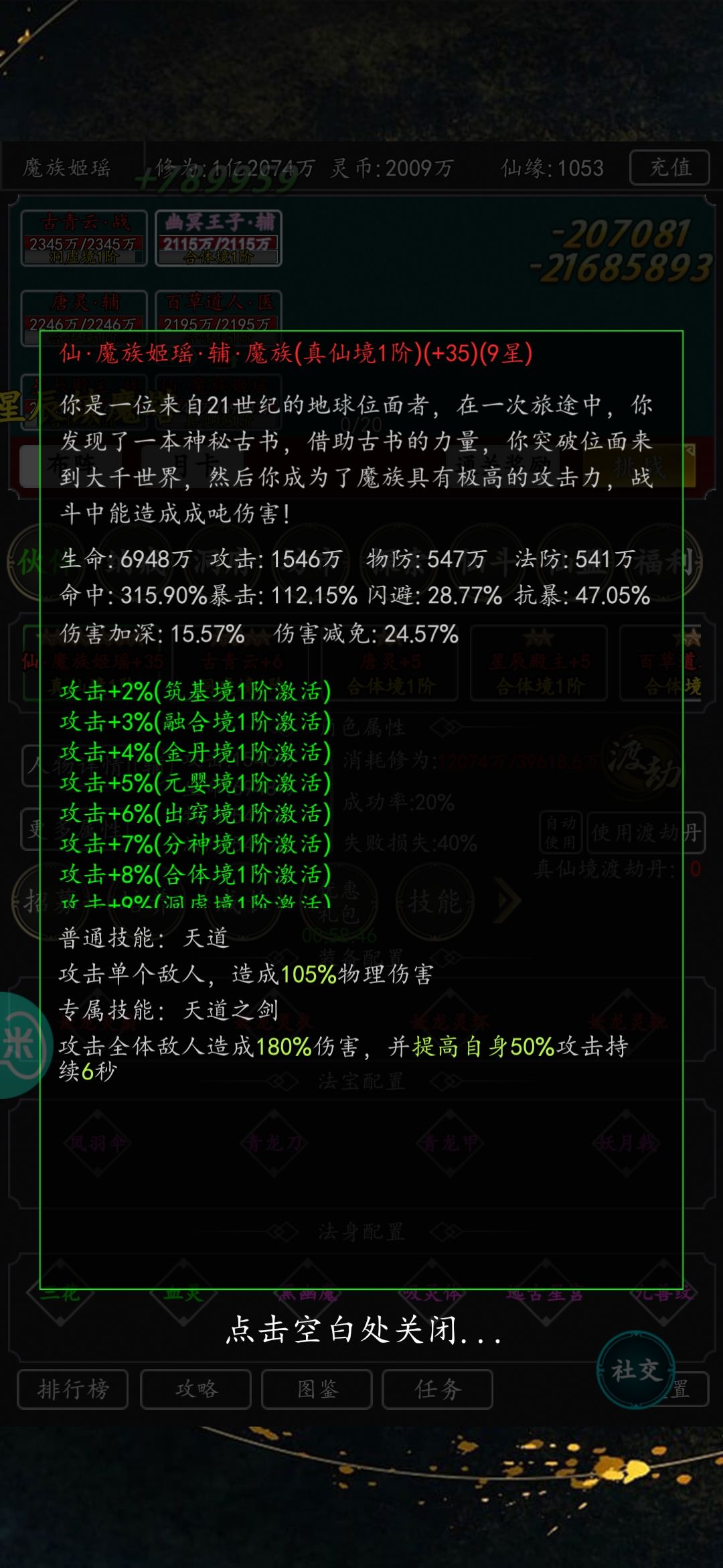 但魔族增攻,设定只增加人物基础属性(不包含装备,神兽,神物等等)实际增幅惨不忍睹。