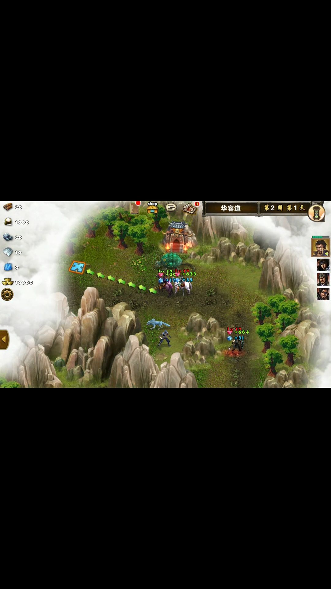 这里就是重点了!一定要让曹操过两棵树中间。