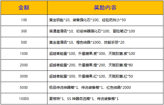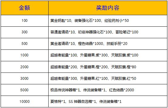 说明:单日累计充值,达到以下档位,可获得对应档位的返利,单日累计,次日重置;