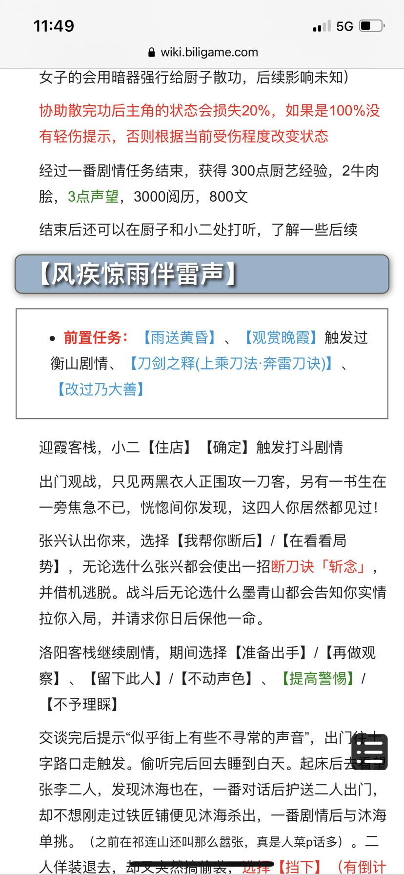 wiki显示的前置再加上对应的故事线和最后的风雷刀剑行,绝壁是风雷剑升级!另外红璃不是药王谷治病了嘛,就没下文了,大胆预测一波,几条线会穿插,最终奖励就是风雷进阶武学升格为上乘!