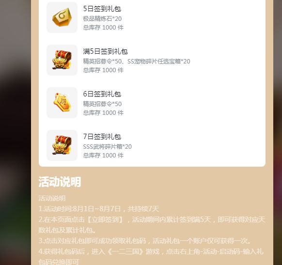 ②进入一二三国论坛,顶部推荐位icon【签到礼包】即可参与