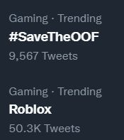 Roblox的绝大部分受众是未成年人,他们对Oof遭到移除的反应免不了露出情绪化的一面。一批玩家在各大社交媒体与视频网站上发起了#SaveTheOOF(救救Oof音效)的抗议与请愿运动,得到了大量响应,一度将活动标签送上了美国的推特趋势榜。