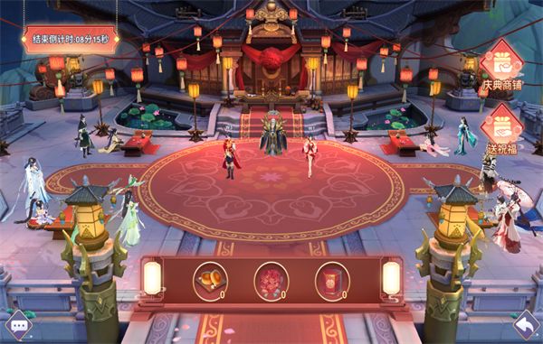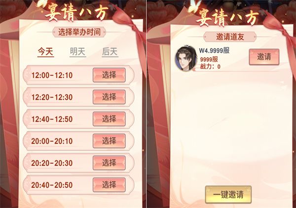 双方均可邀请双方的至亲好友、宗门宾客一起来参与婚礼——双修大典(需消耗999灵石)。前来祝贺的宾客们可以在大典中观礼、聊天、送礼以祝贺新人。