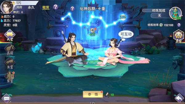新人在结为道侣后,双方形象都将在对方洞府展示并可以进行互动,包括:
