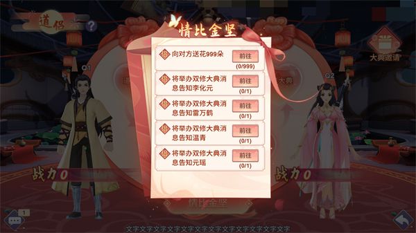 此外,还有道侣专属每日任务,共同完成后道侣双方都将会获得丰厚奖励,助您的修仙之路更加顺畅!