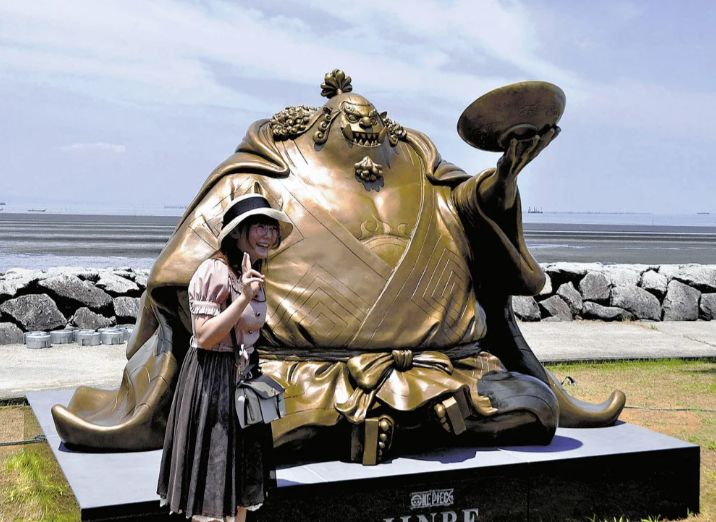 《海贼王》甚平雕像熊本县落成 草帽团10名成员集齐