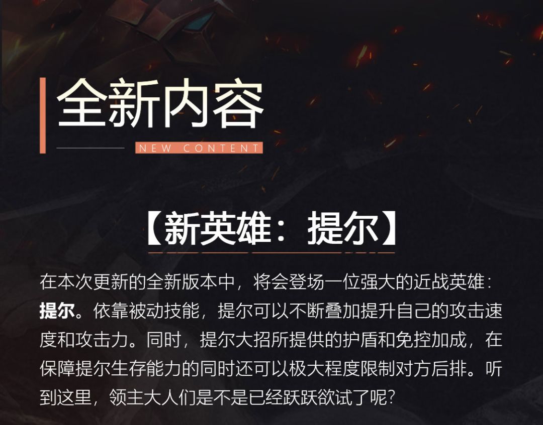 战争之神——提尔,不可阻挡永不停歇的暴力近战输出英雄,在免控状态下疯狂输出的同时会持续获得护盾。