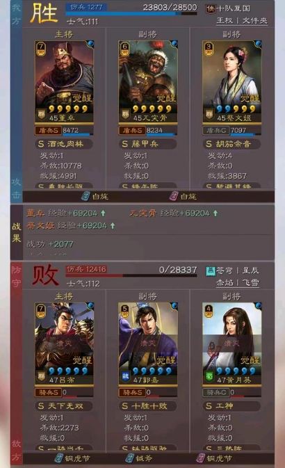 总结:讲道理遇到满红典藏的两大主流阵容,这个队伍在红度基本上是白板的情况下,能打出这样的战报已经相当的出彩,并且还不需要用到草船借箭和抚辑军民这种获取难度较高的战法,实打实的“平民阵容”!相信很多玩家这三个武将甚至红度还会更高,那么在强度方面还能提升一些,感兴趣的玩家可以考虑组一队试试!在胜率方面打白板还是很舒服,很多时候遇到满红大佬的队伍也是有一战之力的!
