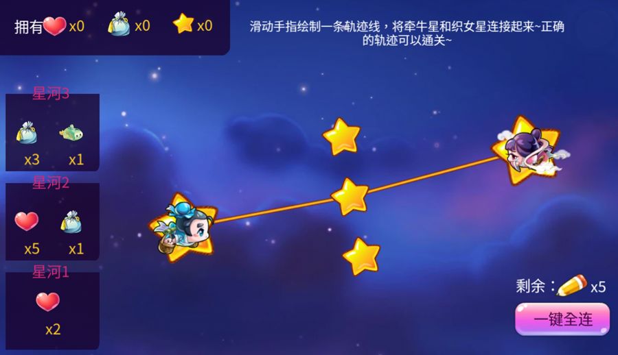 为牛郎织女绘制一条轨迹线,将它们连接起来,积攒最终兑换需要的积分~