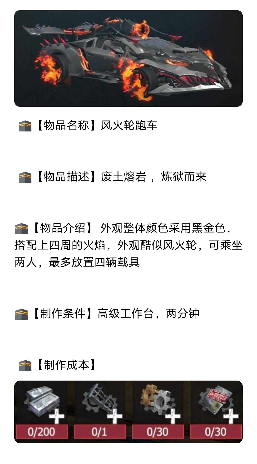 【幸存者联盟】载具图鉴风火轮跑车
