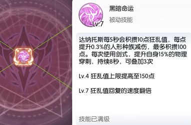 默认1级,最高7级。是一个被动技能。