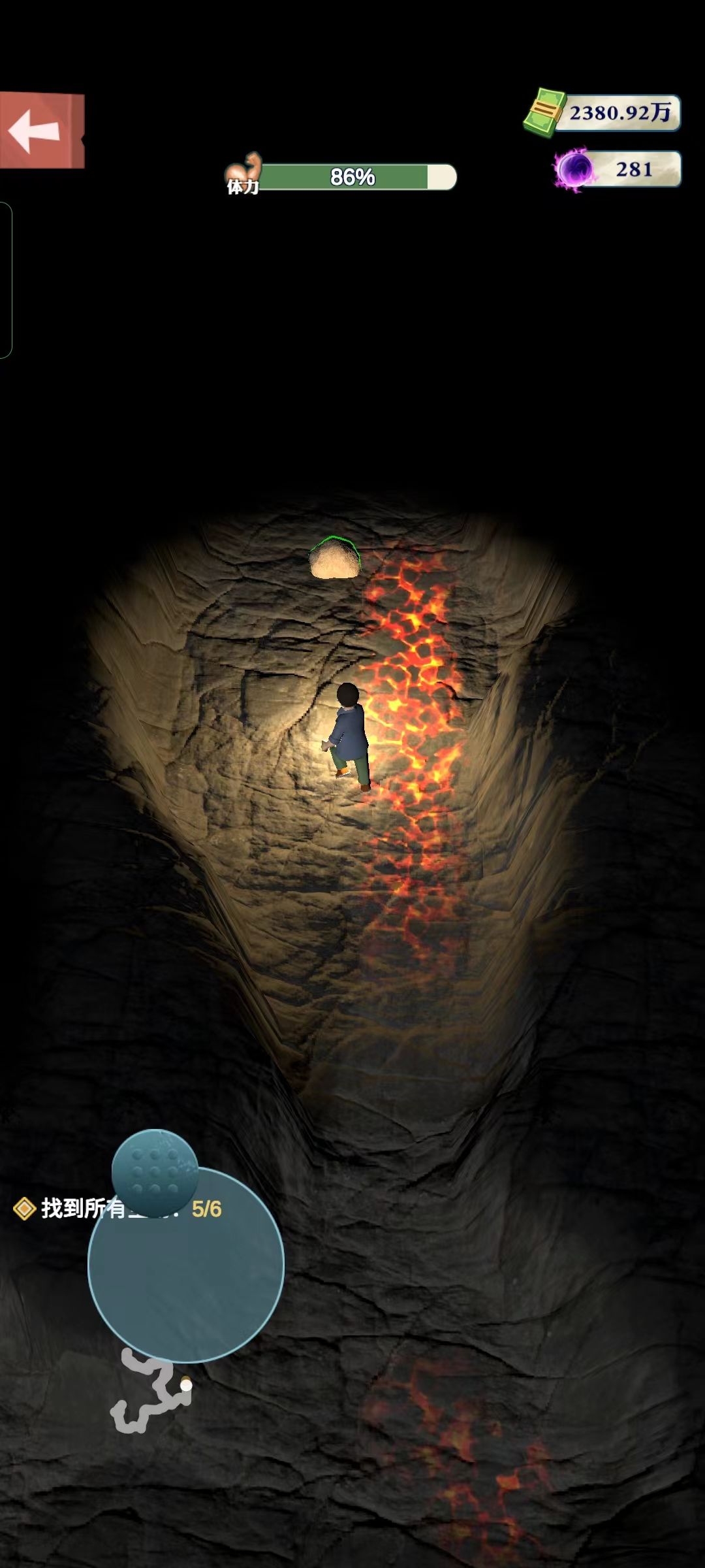 总结一下:大家可以按地图,先找到第5处宝贝,再往上寻找其他宝贝,花费的体力会比较少,昏暗的视角下只有多多摸索啦~大家如果喜欢洞穴探索篇,铲铲会一直给大家更新洞穴宝藏位置哒~
