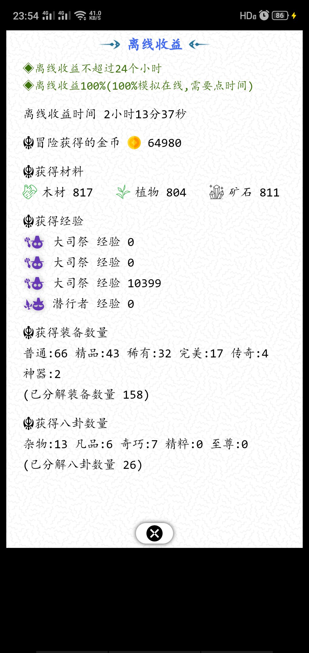 3.无尽的2大目标,神器,装备,故建议大家别纯刷材料,幸运也同材料一起平均点点,说不定有惊喜。