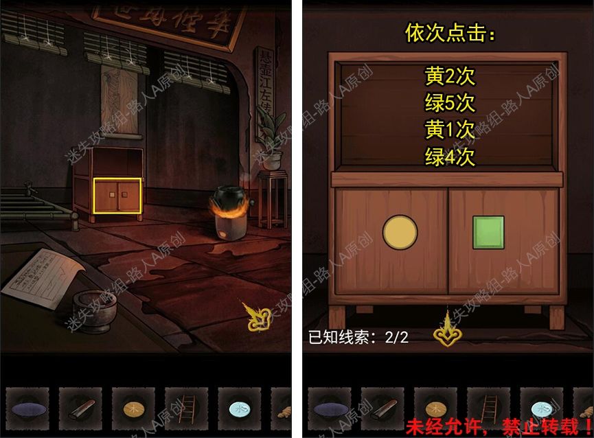 26.根据线索打开柜子,得到【大枣】。(柜子依次点击:黄2次、绿5次、黄1次、绿4次。)26.1、26.2、26.3
