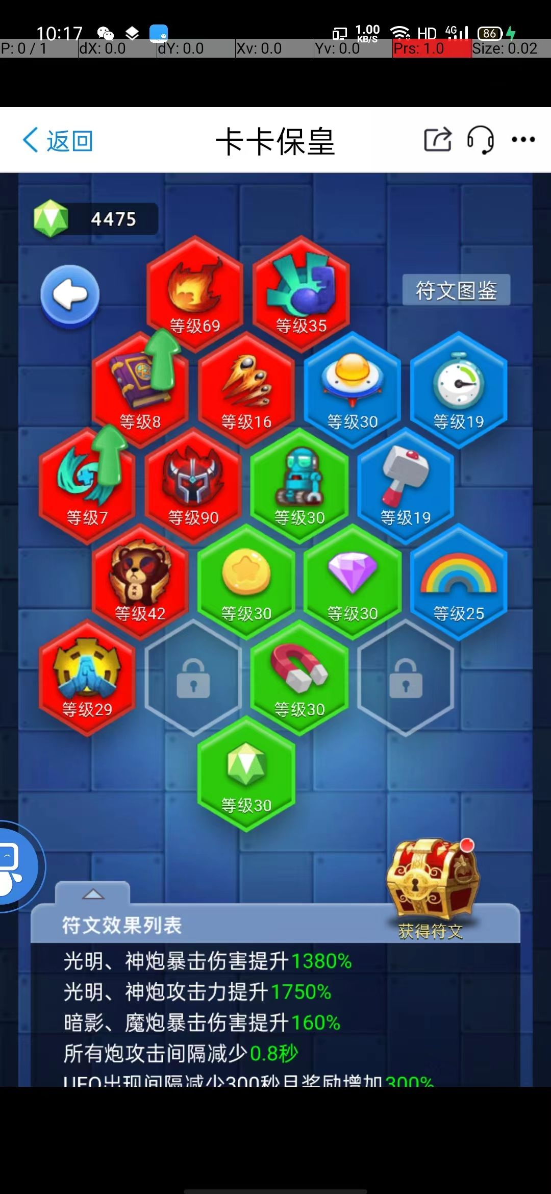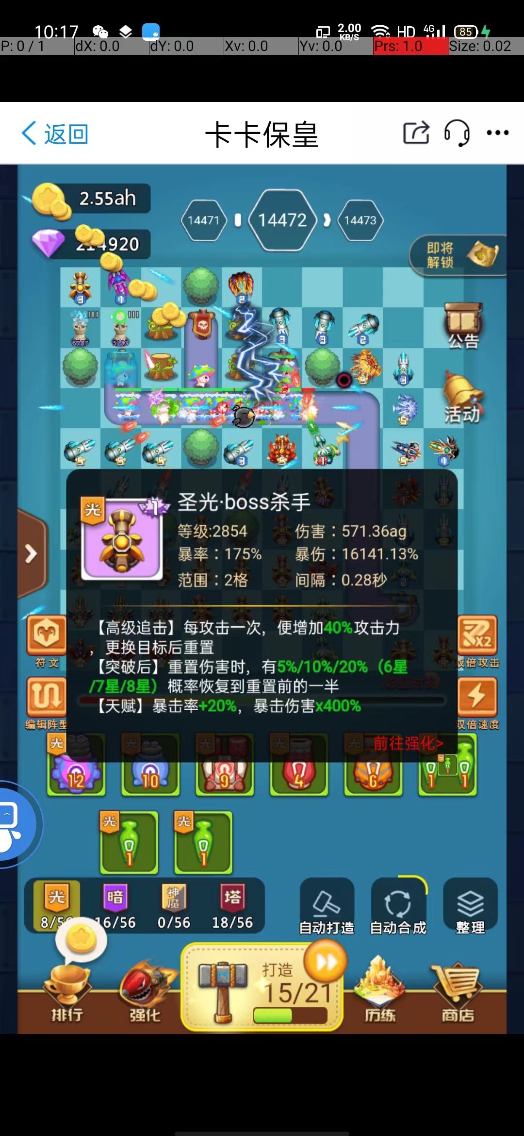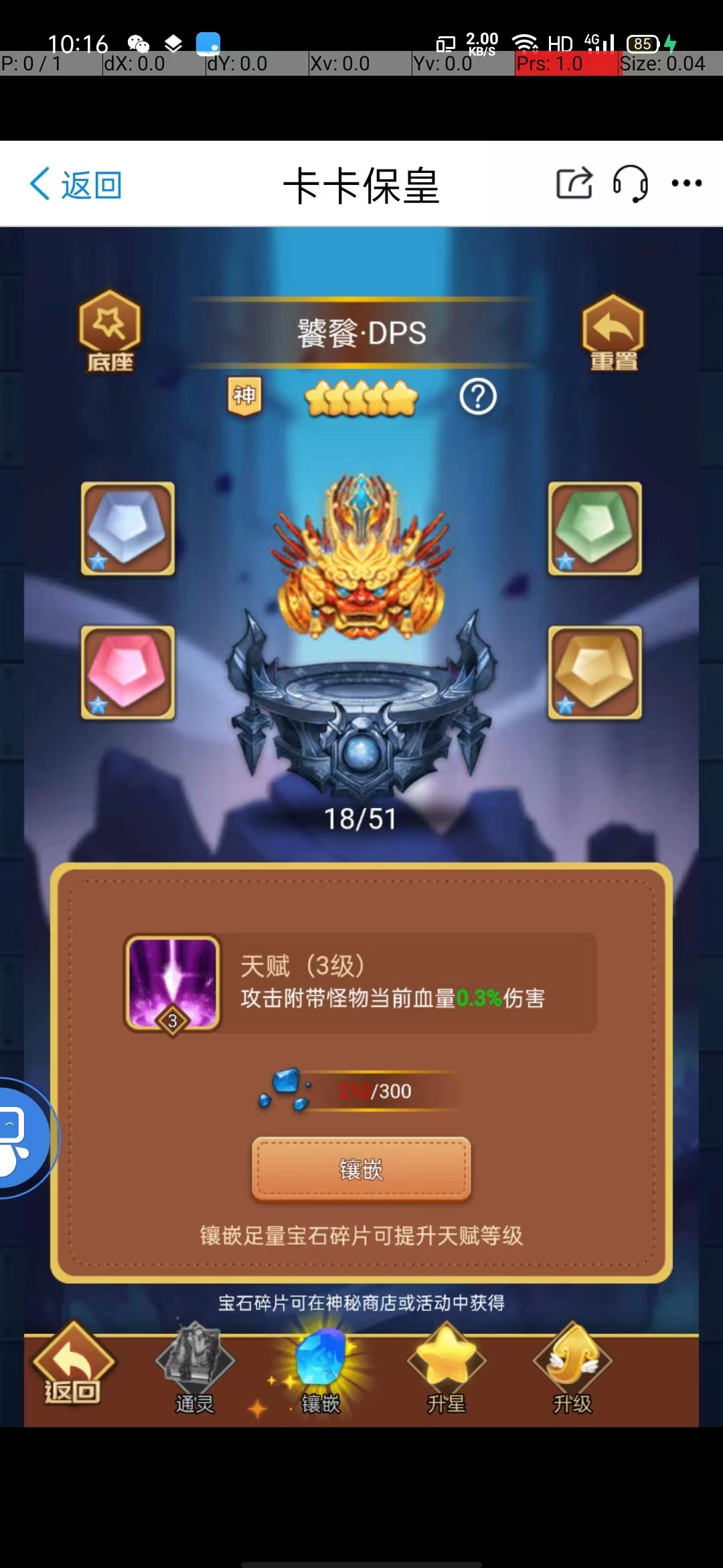 收集宝石碎片,提高天赋比例,跟boss血量一样,天赋比例越高,就能炸血量差距更大的后来的怪。