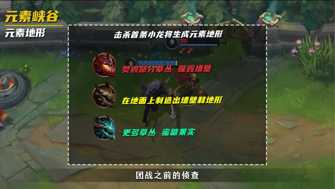 屠龙者机制第一条小龙提供的BUFF和之前差不多,之后每拿一条小龙会使已获得的小龙BUFF效果增强,第二条龙是双倍的2龙BUFF,第三条龙则是三倍的3龙BUFF。连续拿3条小龙的队伍将获得相当于9个BUFF的效果,每局游戏最多只刷3条元素龙。