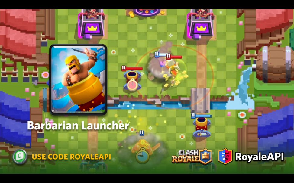 野蛮人发射器是一张5费的普通卡,跟迫击炮很像,除了它发射的是野蛮人!下面是实机演示: