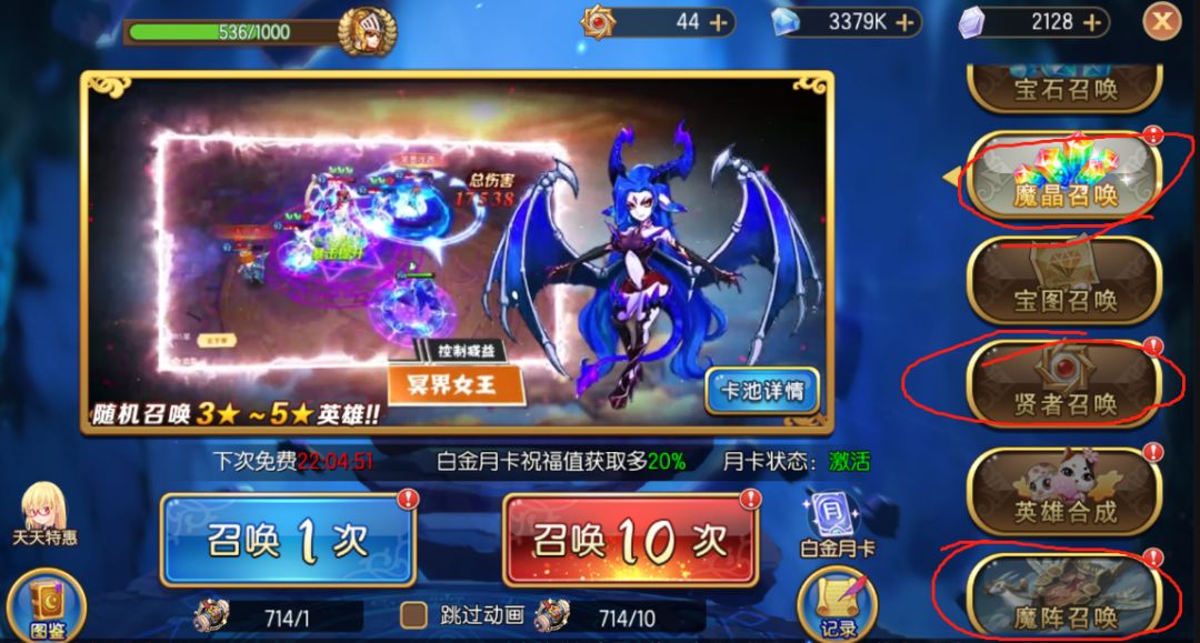 魔晶:抽奖是各系卡主要来源之一,游戏最大爽点。抽奖券除氪金日常之外,每晚9点更新的神秘商店中可以购买。