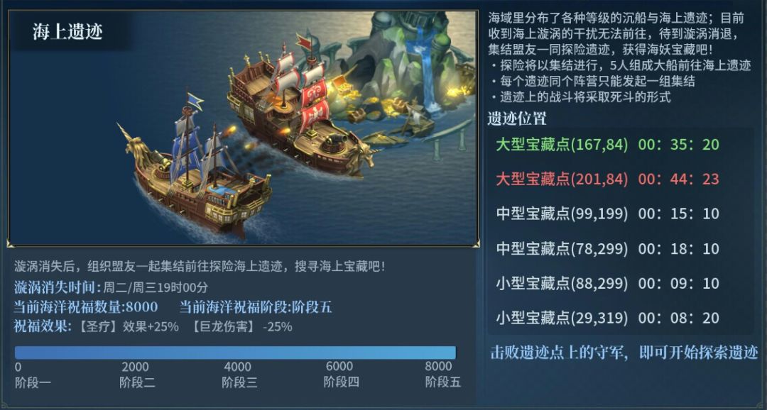 通过在水之神庙中获得的线索,联盟找到了海妖秘宝的具体方位,各位领主也来到了这片藏匿宝藏的水域,通过海上灯塔点亮周围视野,探索海上遗迹继续搜寻海妖秘宝的线索。同时各方势力也将在这片水域展开争夺海妖秘宝的战斗!