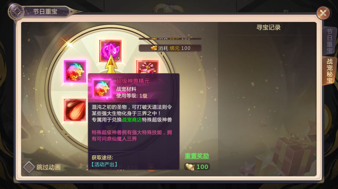 稀世寻宝中可以获取大量稀有材料以及武学福袋。