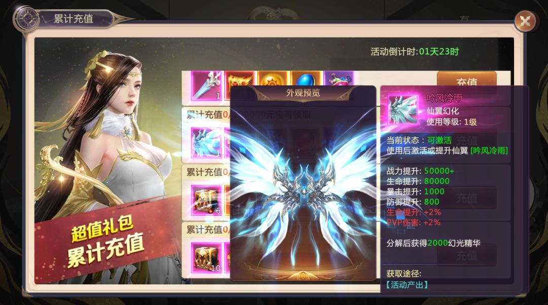 活动期间内充值到累计金额可获得对应的豪华奖励。