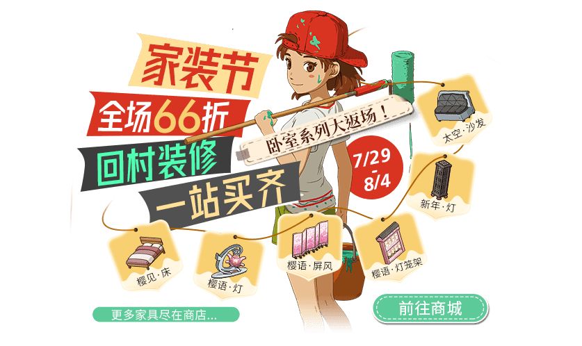 本期返场的家具包括樱见·床、樱语·灯、星月灯·大、樱语·灯笼架等,卧室系列第二期将于8月4日结束,村民们快来进游戏里选购吧!