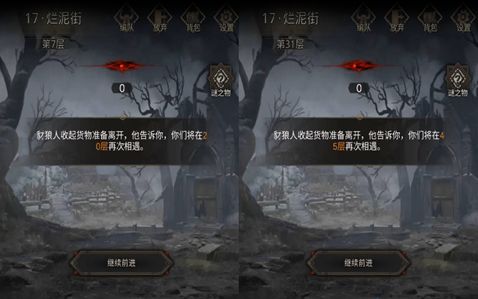 3.商人:商人总计出现3次,除固定出现在第7层与第31层,20层与45层也有几率出现,注意好购买结束的对话即可,这里用来购买增益谜之物与买火油:+45光(竞速用),而指北针,由于通道选项为固定选择参照下列即可,无需强制购买。