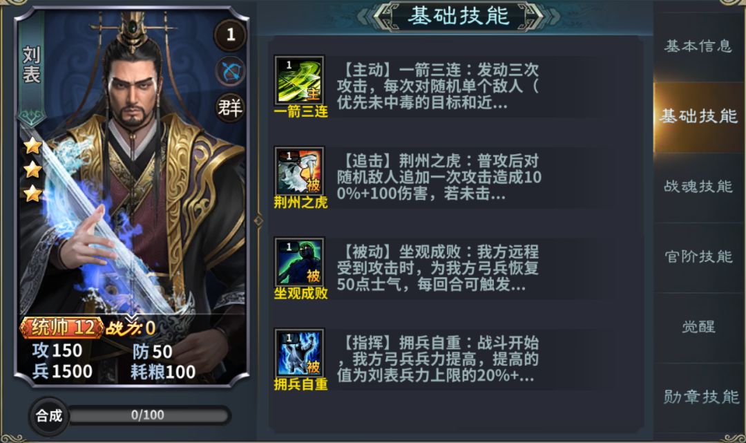 30号寻宝武将-刘表(后排输出武将,使用的玩家较多)