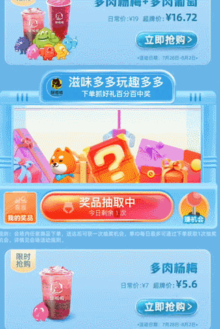 购买指定联名产品后,在活动页面参与抽奖,100%中奖!一定要在当天领取并完成抽奖哦!
