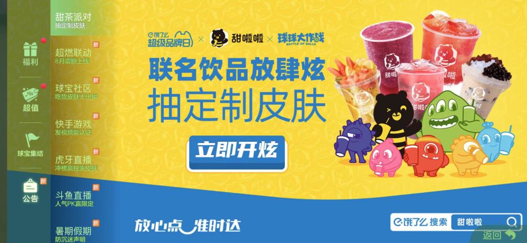 球球大作战×甜啦啦×饿了么丨联名饮品放肆炫,还有专属定制皮肤哦