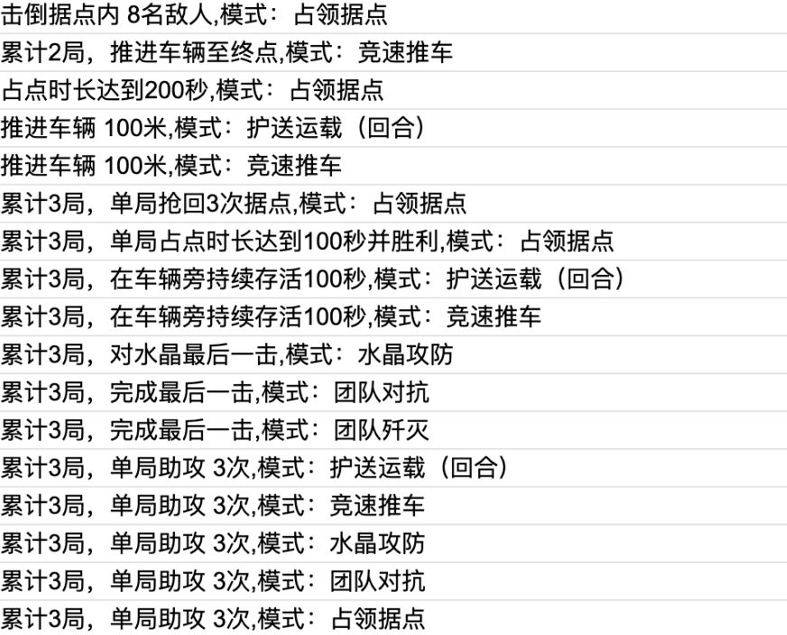 3、修改部分任务条件:如「连续击倒6名敌人」,修改为「单局击倒6名敌人」;「承受 140,000点伤害」,修改为「承受 60,000点伤害」;